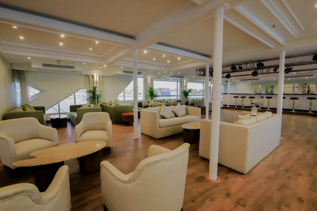 تشمل المساحات العامة مطعمًا رئيسيًا يقدم الوجبات بنظام البوفيه، وصالة وبارًا للاسترخاء في المساء، إلى جانب سطح شمسي مفتوح مزوّد بمناطق جلوس وحمام سباحة، ما يتيح للضيوف الاستمتاع بمشاهد نهر النيل أثناء ساعات الإبحار. ويتميز الجو العام على متن الرحلة بالهدوء والطابع التقليدي، مع تركيز واضح على الراحة أكثر من المبالغة في الفخامة.