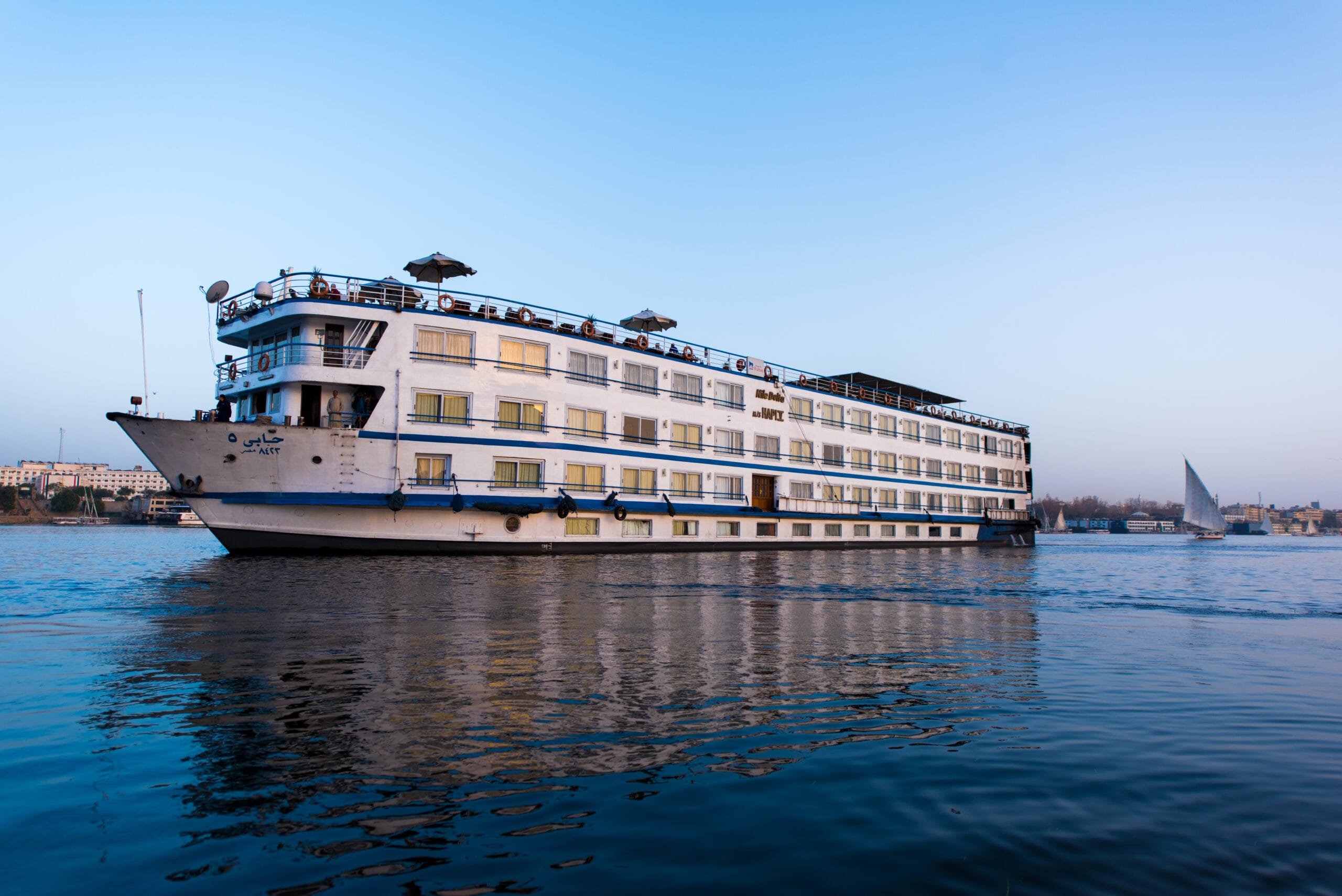 تقدم تجربة إبحار ديلوكس كلاسيكية على متن رحلة حابي 5 النيلية، وهي مركب نيلية حديثة تعمل بين الأقصر وأسوان. توفر الرحلة مستوى مريحًا من الفخامة مع كبائن مجهزة بعناية تضم نوافذ بانورامية، وحمّامات خاصة، وتكييف هواء، وتلفزيون، وتجهيزات ديلوكس مناسبة للإقامات المتعددة الليالي على نهر النيل.